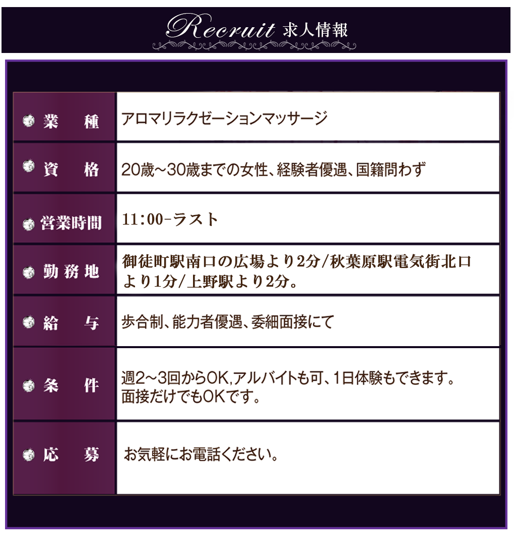 Top | システム | スタッフ | 店内風景 | アクセス | 求人情報